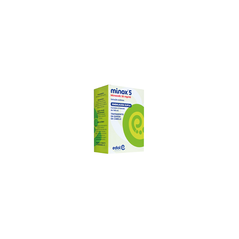 Minox 5 é um medicamento de uso cutâneo que se apresenta na forma de solução cutânea, hidroalcoólica, e que contém a substância ativa minoxidil na concentração de 50 mg/ml.