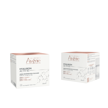 A nova gama Hyaluron Activ B3 estimula a regeneração celular para resultados duradouros, graças a uma combinação de 2 ingredientes ativos impulsionadores da longevidade: o niacinamida e o ácido hialurónico.