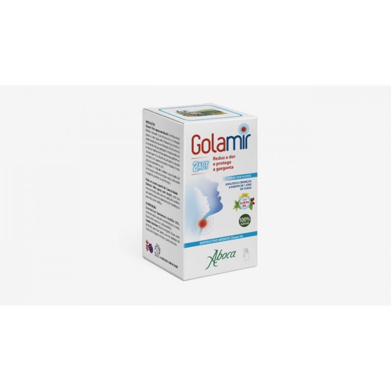 Golamir 2Act spray sem álcool é indicado nos casos de dor de garganta para o tratamento dos estados irritativos e inflamatórios da cavidade orofaríngea, que podem ser causados por vírus, bactérias, alergénios ou pelo contacto com agentes externos irritantes (fumo, poluição atmosférica, pó). O produto é indicado também nos estados de constipação onde as secreções nasais, descendo à garganta, podem causar irritação.