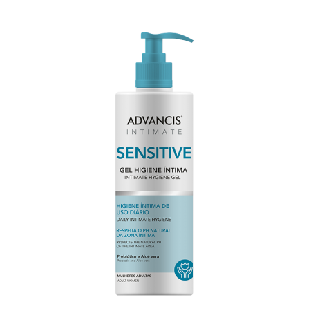 Advancis Intimate Sensitive Gel Higiene Íntima foi especialmente desenvolvido para o cuidado íntimo diário. A sua fórmula enriquecida com Aloe vera e ácido láctico destina-se à higiene diária, para um maior conforto da pele da zona íntima.