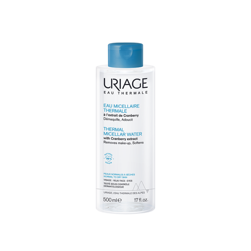 A Água Termal Micelar é ideal para remover a maquilhagem de todos os tipos de pele devido às propriedades únicas da Água Termal de Uriage. Com tensioativos suaves não iónicos, que formam as micelas, removem eficazmente a maquilhagem e as impurezas.