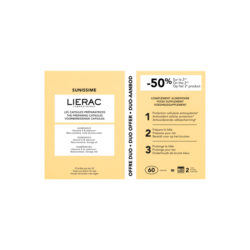 Para um bronzeado bonito e rápido e uma pele mais resistente ao sol, prepare a sua pele com SUNISSIME cápsulas de bronzeado. Estas cápsulas podem também ser usadas ao longo do ano para um tom natural…
